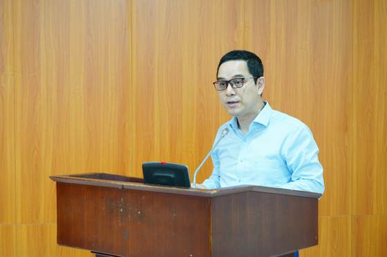 PGS.TS. Tạ Minh Tuấn, Phó Bí thư Thường trực Đảng ủy, Phó Chủ tịch Viện Hàn lâm trình bày dự thảo Báo cáo kết quả công tác quý I năm 2026 và nhiệm vụ trọng tâm quý II năm 2026