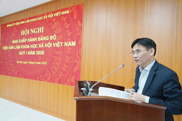Chiều ngày 02/4/2026, tại Hà Nội, Đảng ủy Viện Hàn lâm Khoa học xã hội Việt Nam (Đảng ủy Viện Hàn lâm) tổ chức Hội nghị quý I năm 2026. GS.TS. Lê Văn Lợi, Ủy viên Ban Chấp hành Trung ương Đảng, Bí thư Đảng ủy, Chủ tịch Viện Hàn lâm Khoa học xã hội Việt Nam chủ trì Hội nghị.